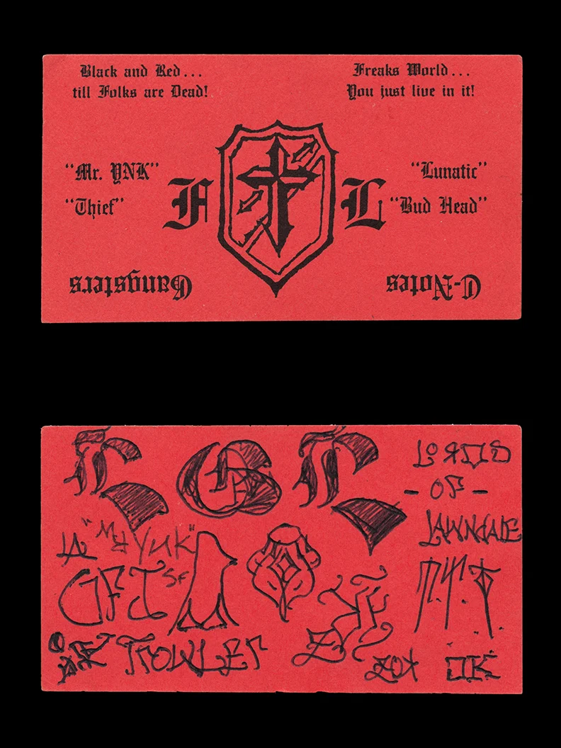 Yes! I'm just going into production with my next book, Thee Almighty & Insane: Chicago Gang Business Cards from the 1970s and 1980s, which will feature a selection of aforementioned "compliment cards" from my personal collection. These cards were unique to Chicago and this time period. I'm a big fan of the aesthetic sensibility—the “Old English” fonts, hand-drawn graphics, and inventive names. I'm originally from the Chicagoland area and discovered this phenomenon through my Dad who had an old compliment card in a cigar box of his belongings in the attic. Apparently his friend was a member of one of the gangs. I later found a couple sources from which to acquire more original cards and built my collection from there. I feel like the book will be of strong interest to the world I operate in—the crossroads of contemporary art, publishing, and print ephemera. Keep an eye out for that in the next couple months.