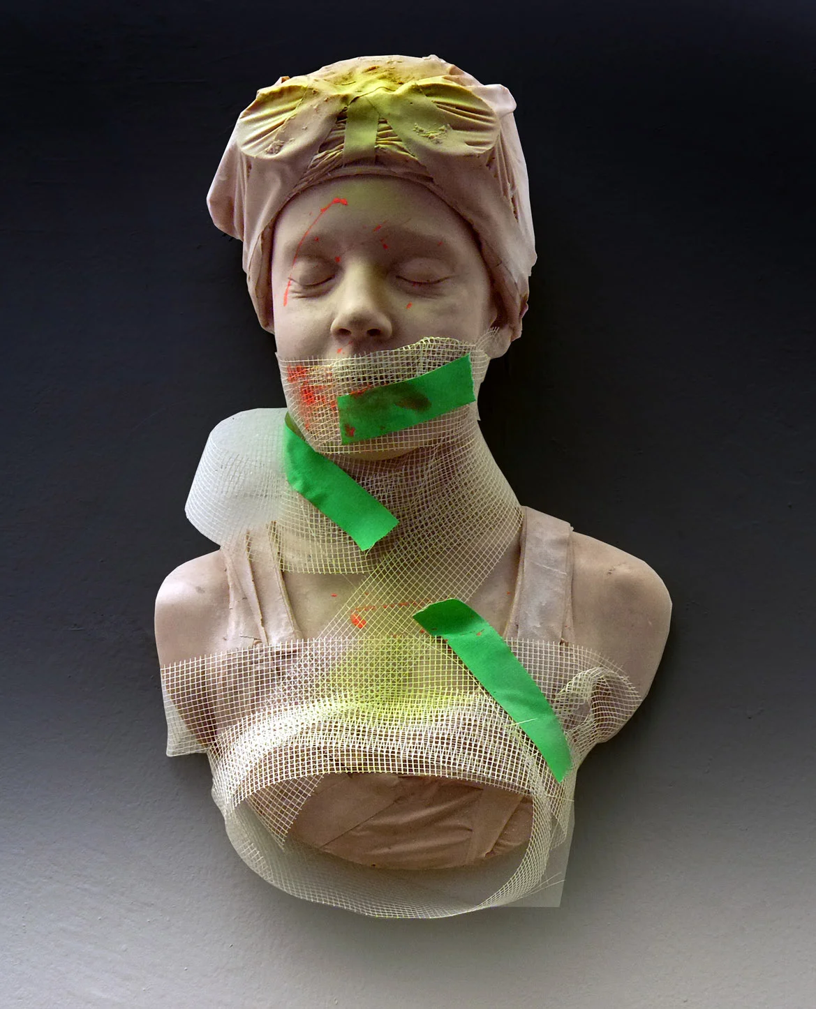 Seen but Not Heard, 2006, resin & mixed media, 21 x 25 x 7"