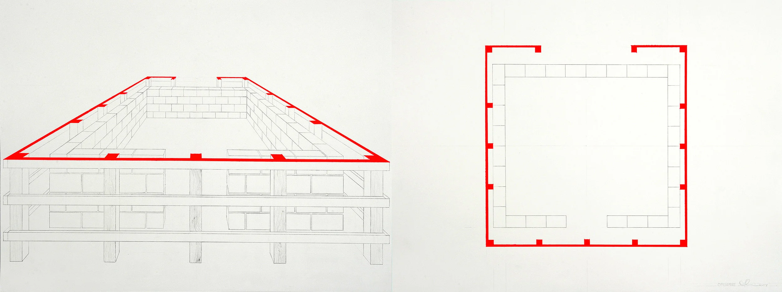 JFR: They depict seemingly mundane architectural spaces or elements like studs and PVC pipe, but on closer inspection there's something almost uncanny about them.