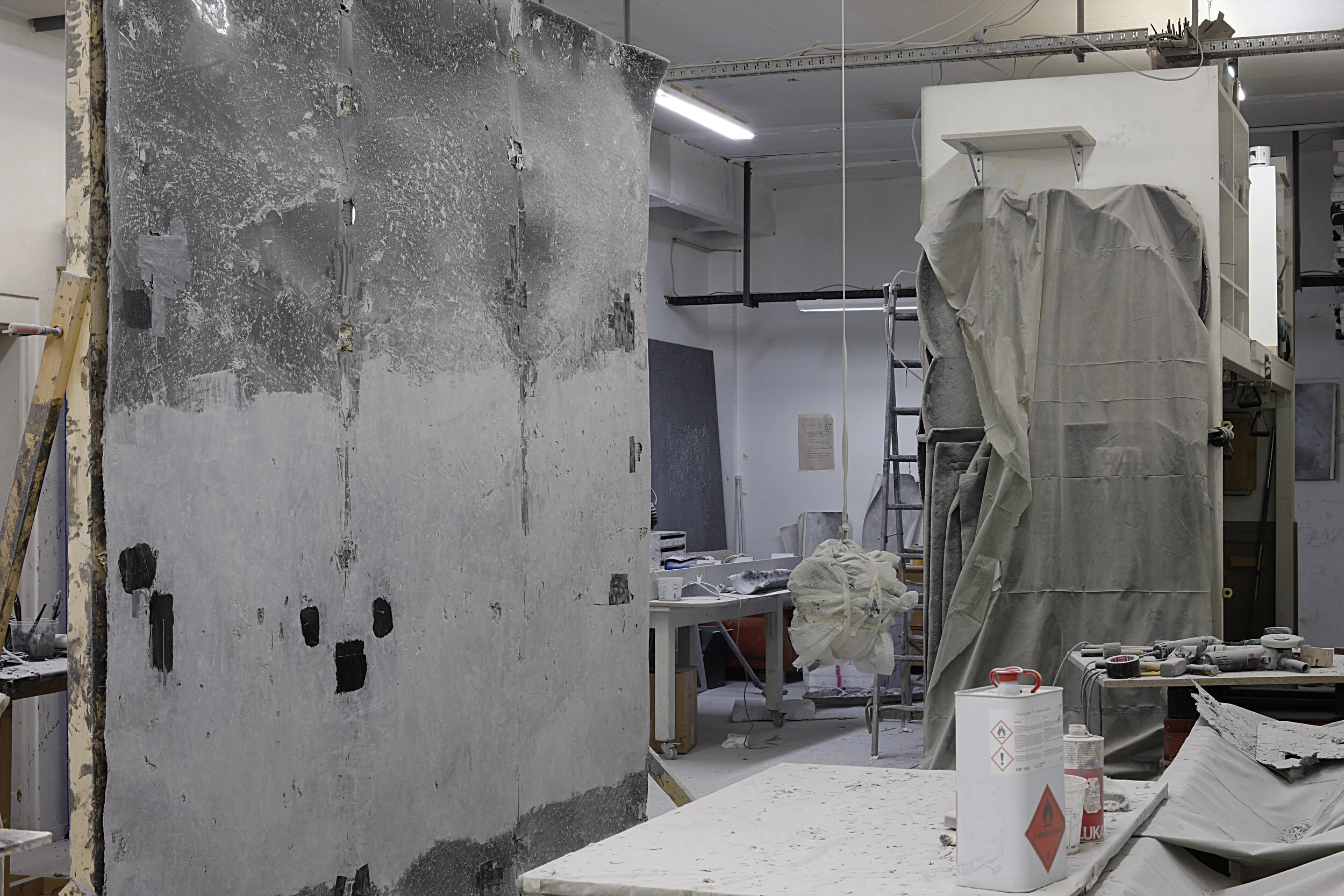 Erik: When I first discovered the space about eight years ago it felt weird to be here every day. My first visit was on a cold grey dark December evening. I walked through these huge corridors, scanning hundreds of rooms to decide which one it was going to be. It felt very far out from the center, but today so much art is happening here. Whether there is an influence on my art itself is hard to say, although all surroundings have an impact on our daily routines and logistics of course. The size of my studio and the size of the building dictates of course how big work I can create.