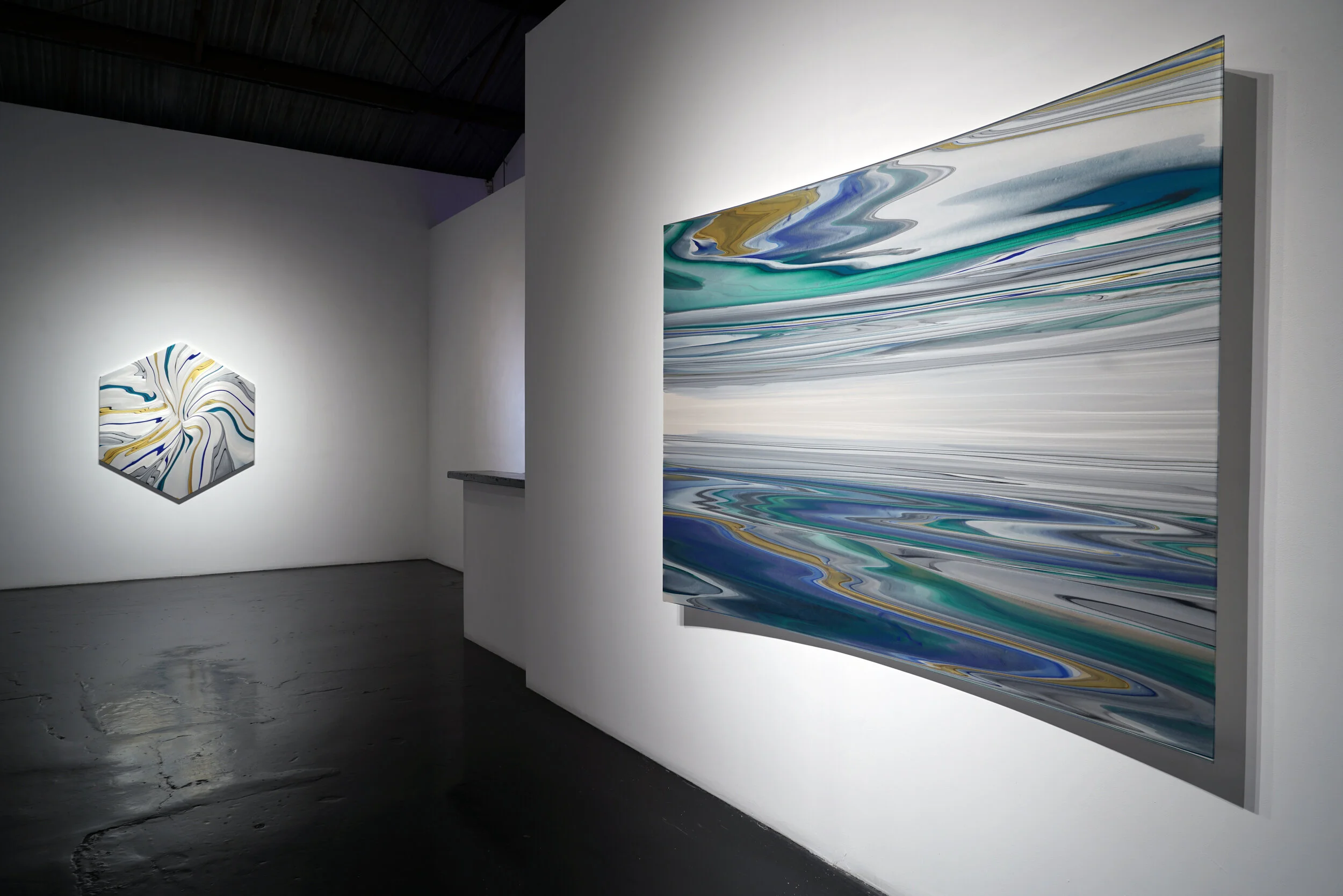AM: My technique and my vision are now essentially one and the same. During the eighties, and part of the nineties, my work process involved techniques of mixing oil and water-based paints. It was something that you weren’t supposed to do, and I loved the sense of experimentation and the unexpected images that resulted. The paintings from that time looked like galactic explosions, microscopic phenomena, or stone surfaces. After moving back to Los Angeles, beginning in the early 2000s, I began a series of paintings that looked more like liquid motion, involving all kinds of phenomena. I’m constantly looking to nature to suggest what will be in these paintings. It’s a magical process that’s hard to describe, but it’s almost like a transmutation of energy that occurs between seeing and creating.