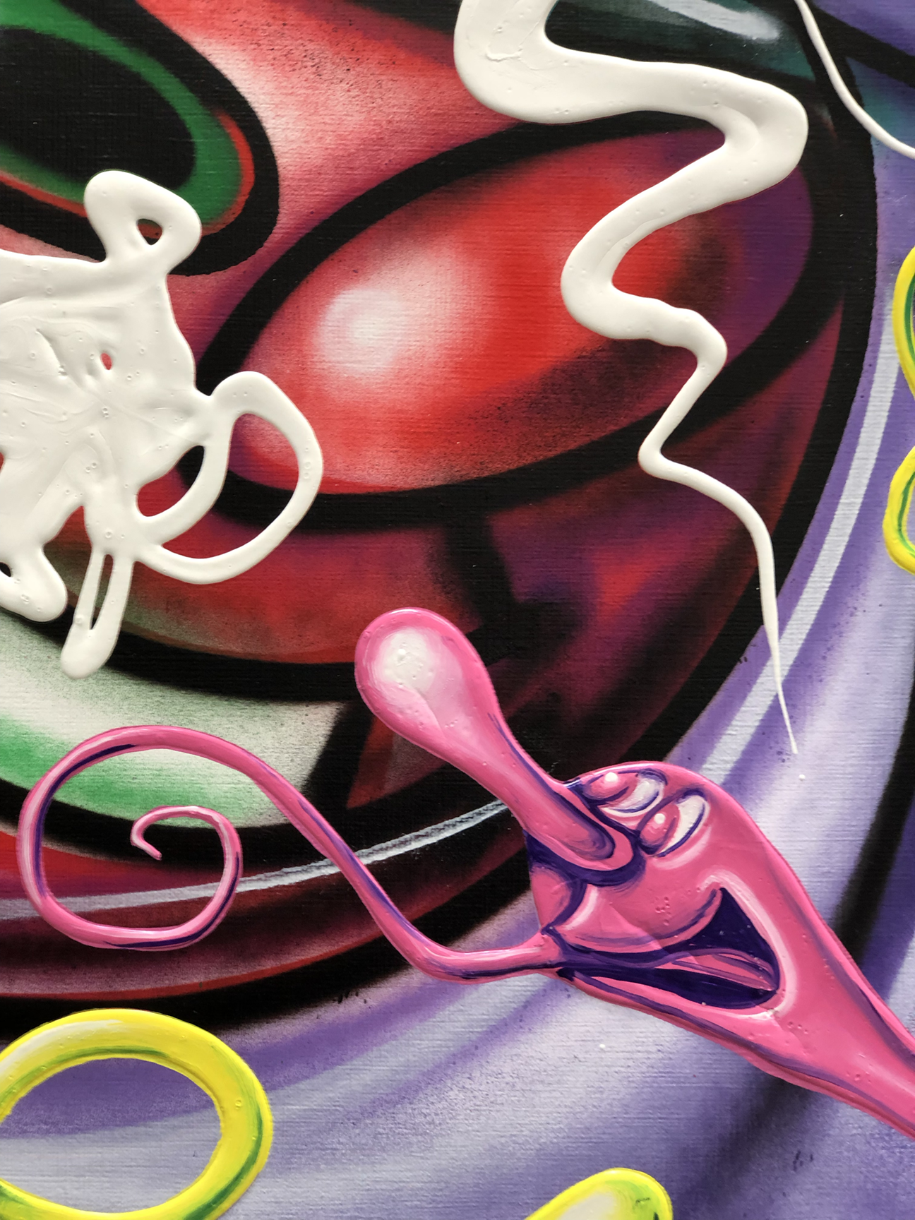Kenny Scharf, GRAPPY, 2020, Spray paint on canvas, 40 Inches diameter